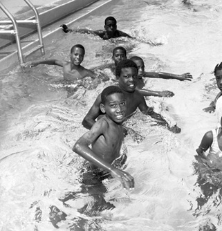 One Caribbean boy stood in awe at the shallow end as he watched the swimmer clocking up the lengths with such regularity – twenty, thirty, forty in no time. The boy was maybe ten years old, his loose trunks in Jamaican colours of red, green and gold. He was clearly getting agitated as he pulled at them at the front. He too had the build, as yet unformed, of a potential swimmer.